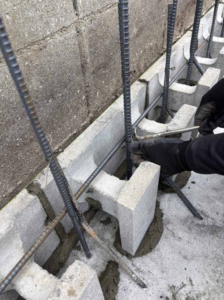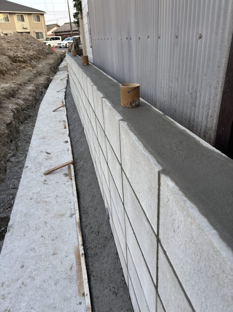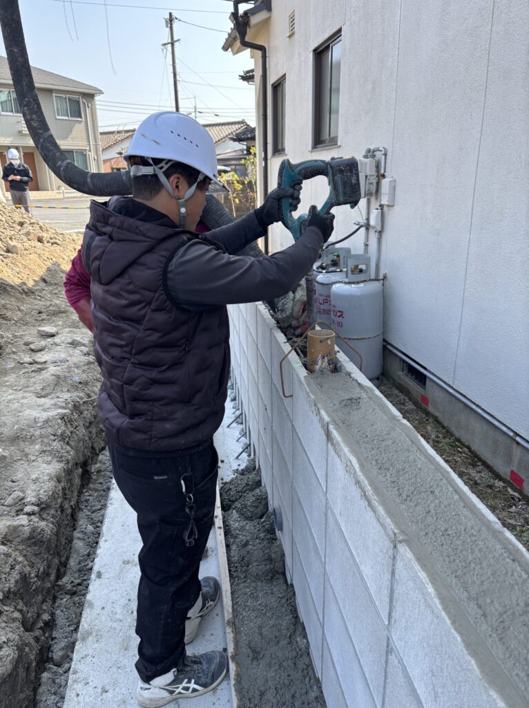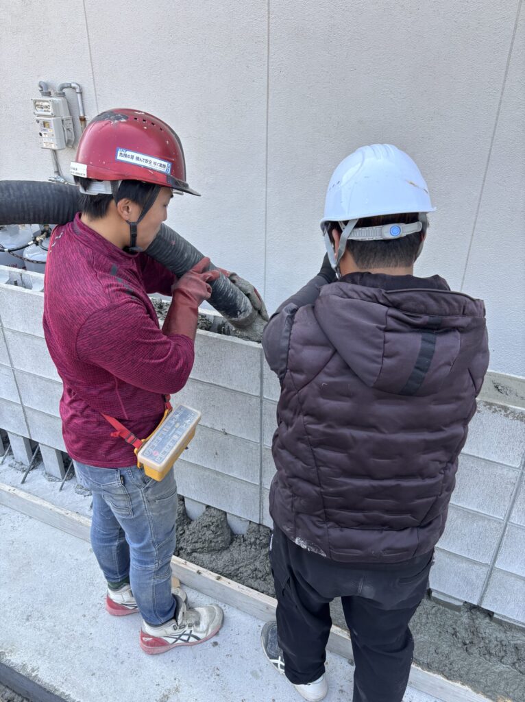 今回は型枠ブロックにコンクリートを打設する工程までをご紹介します。