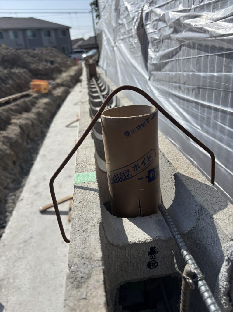 後にフェンスが設置できるよう、ボイド管を使用して柱用の穴を確保します。